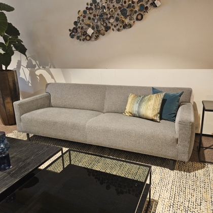 We hebben de bank Julia van Jame als showroom model afgeprijsd. In een rijke comfortabele blauwige stof gestoffeerd.